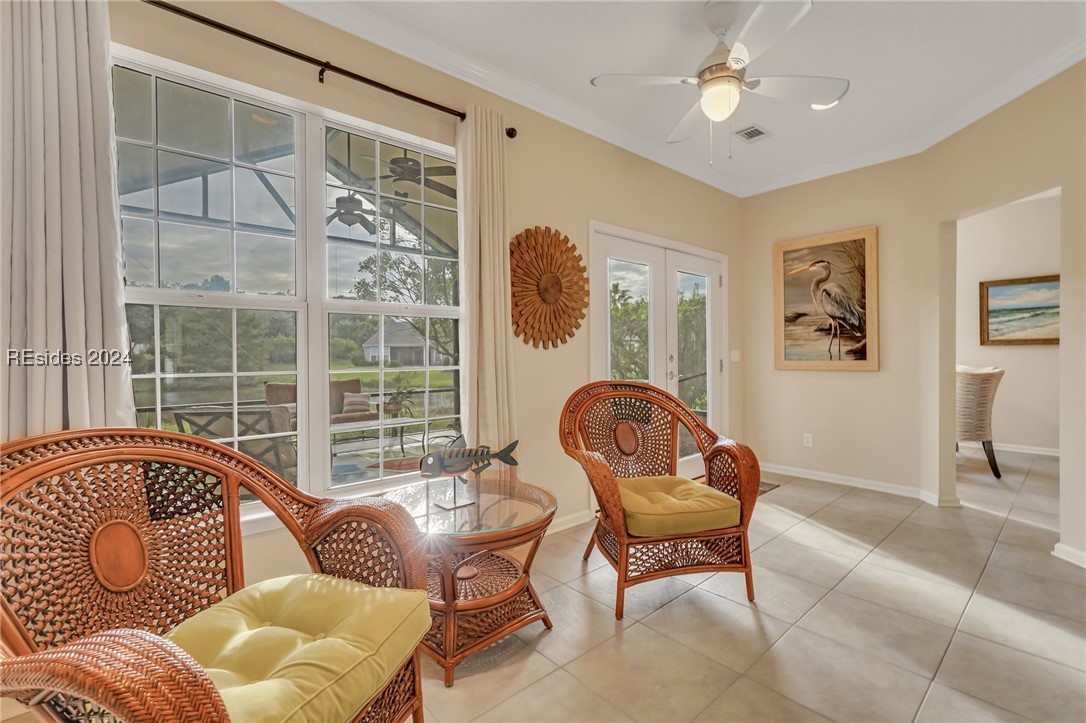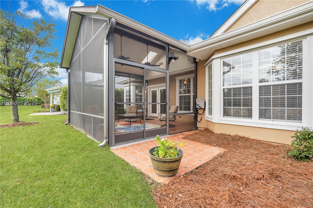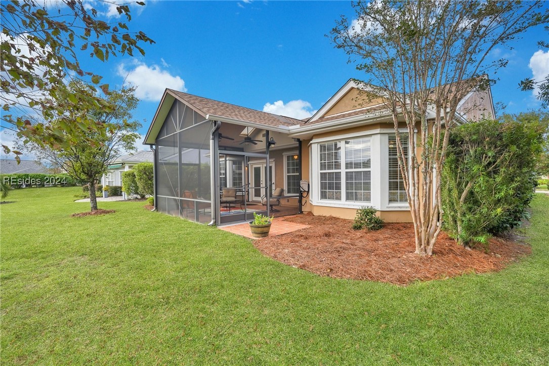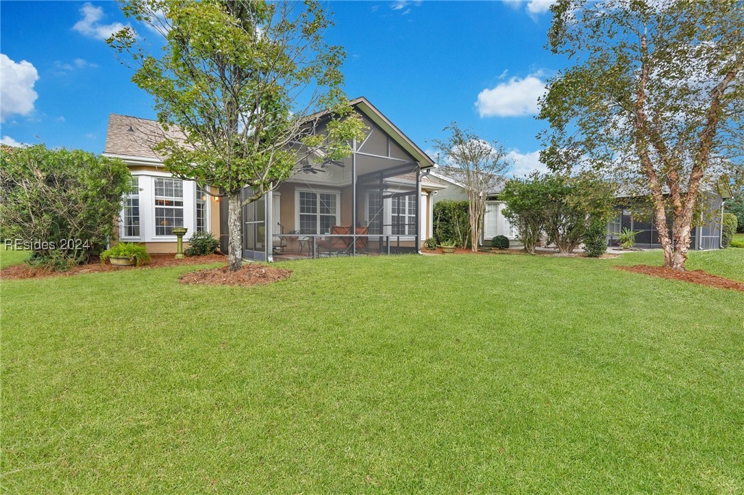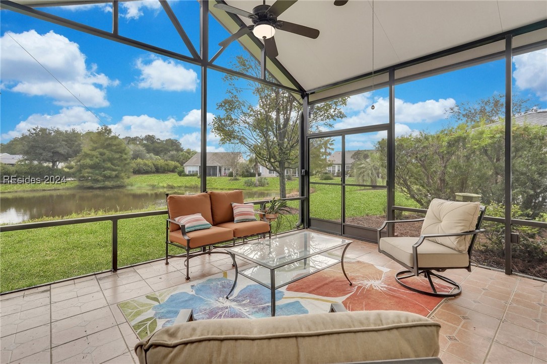 Discover your dream home in Sun City Hilton Head! This Ibis Model offers 3BD/2BA plus an Office/Flex room. Enjoy open-concept living with scenic views from the living room, Carolina Room, and covered lanai overlooking a tranquil lagoon--perfect for morning coffee or sunset watching. Upgrades include crown molding, solar tubes, premium granite counters, and cherry cabinets. Primary Bedroom has an en suite with jetted tub and separate shower. Ideally located near amenity centers, gyms, and pools. With access to over 150 social clubs, golf, pickleball, tennis, softball, and more. New roof, Irrigation & Ext paint 2024. Newer tankless water heater