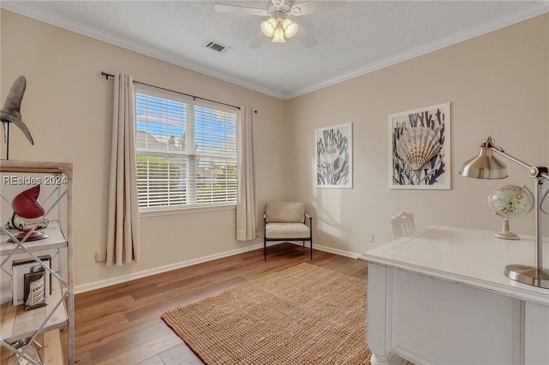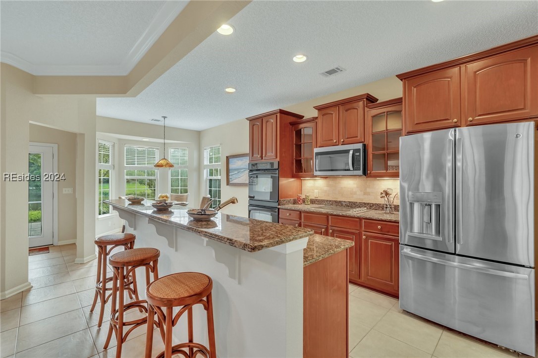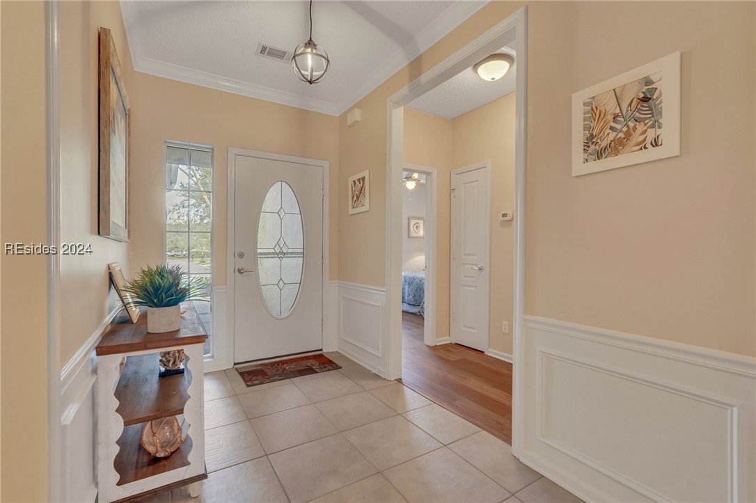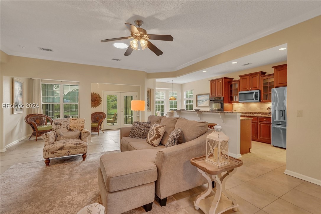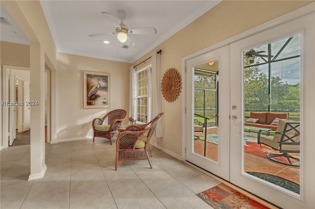 Discover your dream home in Sun City Hilton Head! This Ibis Model offers 3BD/2BA plus an Office/Flex room. Enjoy open-concept living with scenic views from the living room, Carolina Room, and covered lanai overlooking a tranquil lagoon--perfect for morning coffee or sunset watching. Upgrades include crown molding, solar tubes, premium granite counters, and cherry cabinets. Primary Bedroom has an en suite with jetted tub and separate shower. Ideally located near amenity centers, gyms, and pools. With access to over 150 social clubs, golf, pickleball, tennis, softball, and more. New roof, Irrigation & Ext paint 2024. Newer tankless water heater