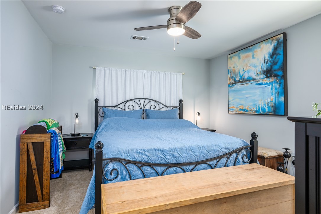 Welcome to The Estate at Westbury. Gated entry, gas lighting, tree lined streets, feels like home the minute you enter. Pools, fitness, clubhouse, lagoons and pet friendly, complete the charm. Conveniently located in Bluffton, a short drive to Hilton Head and Savannah. Perfect primary residence, second home or investment property. This charming second floor, end unit, 2 bdrm, 2 bath, has bright open floor plan, will not disappoint. LVP flooring, plush carpeting in bedrooms, gourmet kitchen with granite! You'll have the newest, latest appliances, including energy efficient Samsung washer and dryer. Balcony with storage. It has it all!